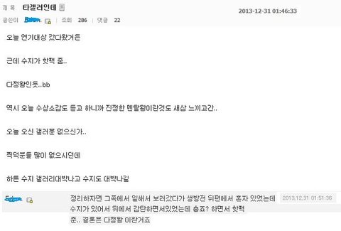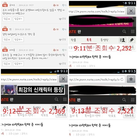 수지 팬들은 설리가 핫팩줬을때는 찬양하지 말라고 그러더니 수지가 주면 찬양해야됨? 진짜 어이가없네 윤아고 뭐고 까내리면서 수지 추켜세우는 수지팬 클라스보솤ㅋㅋㅋ 진짜 수지팬들도 뇌가 청순한듯 청순미 흘러넘쳐서 좋겠수 ----[적당히 조작해라]오늘 조작의 현장을 직접 목격하네 내눈알이 병신인가 1분만에 베댓이 3개가 만들어지고 1분마다 조회수가 100개씩 늘어나는 신기하고 기이한 현상을 직접 격었다