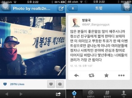 이렇게 산소호흡기 할만큼 열심히 연습하고 또 연습하는데 어떻게 이남자를 안사랑할까ㅠㅠ 정말 내가 팬으로서가아닌 사람으로서 보고배우는게 많은거같다 방용국뿐만아니라 B.A.P라는 그룹 전체가 너무 자랑스럽고 기특하다 2014년도에는 더 승승장구하는 그룹이되길. 글재주도없는 글 봐주셔서 감사해요