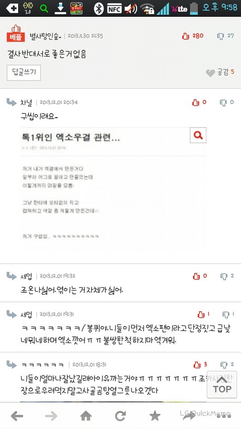 됴자기들 내가 뒷북이긴한데 최근에 폰이 맛이가서... 이 애기를 지금 들었는데 경수랑 아이유랑 우결 그거 루머지? 구씹맞지? 아이유 좋아하긴하는데..... 지금 우결 안좋은애기도 많고 긍정적으로보면 자기가 좋아하는 가수의 다양한 방면을 볼수있다고하던데 난 거기까지 쿠크는 안될것같아..