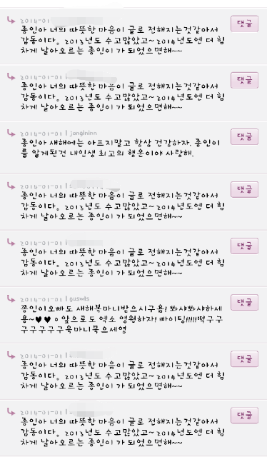 아무리자기댓글을 종인이가 봐줬음하지만 그렇다고 이렇게 도배해서 종인이가 한댓글만 보는 것보다 여러팬들 댓글 보고 힘내면 좋겠다 꼭 내댓글이아니더라도!