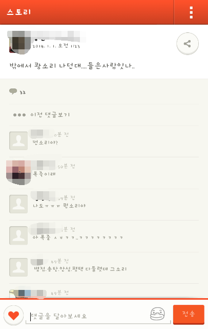 근데 베란다창문도 다 닫혀있었고 티비도틀어져있었는데 들릴정도면 꽤 큰것이 떨어졌겠거니 하고 같은아파트에사는 친구들이있는 단톡에 방금있었던일을 말했어요