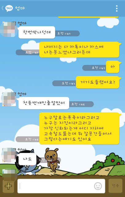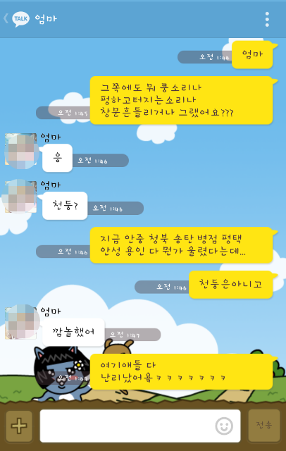 안성에 살고계시는 엄마한테 톡으로 물어봤어요