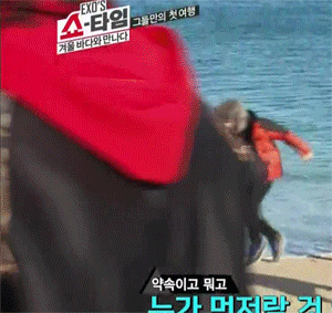뒤엨ㅋㅋㅋㅋ파도피해필사적으로달려가는종대와준멘ㅋㅋ무슨축지법쓰는줄ㅋㅋ그리고가운대대체뭘하고있는지모르겠는타오ㅋㅋㅋㅋ너머하고있는거닠ㅋ