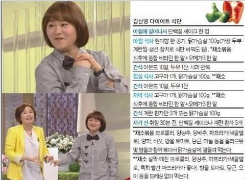 참고로 팁, 김신영이 실제로 진행하고 있는 다이어트 식단!