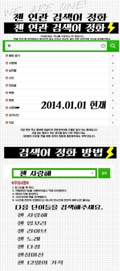 지금 애들 네이버 연관검색언데 진짜 가관임..참..애들이 이거 보고 무슨 생각을 할지.....진짜 속상하다그냥 네이버에 자동검색기능 사용하지 말고 끝까지 직접 타이핑해서 검색하면됨! (ex. 첸 사랑해)지금까지 모인 자료는 세멤버밖에 없는데 다른 멤버들도 검색해주길!(이상한 검색어는 클릭도 하지말길 ㅠㅠ)