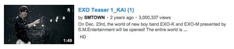 엑소의 첫번째 티저였던 My Lady 조회수 어느새 삼백만 넘었다. 새해라서 그런지 더 기분이 좋네. 티저로서는 기록적인 조회수인 듯~