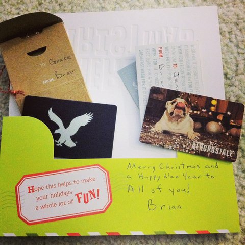 열어보니 간단한 카드랑 gift card 두개가 들어있었음!! gift card 는 한국으로 치면 문상 같은건데 특정한 가게에서 쓸수 있게 해논 카드임!