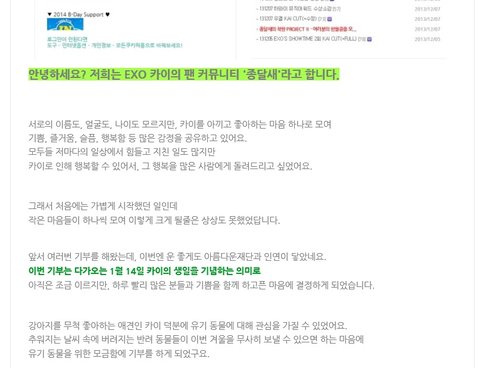 카이 커뮤니티인 종달새에서 다가오는 카이 생일 기념으로