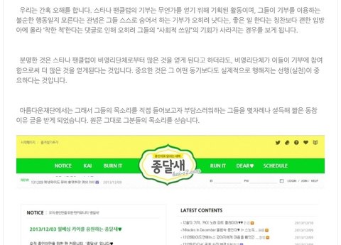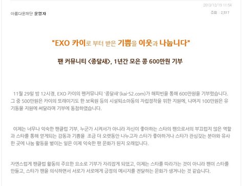 몇차례 설득 끝에 카이팬들이 기부를 동참하고자 했던 이유를 인터뷰함