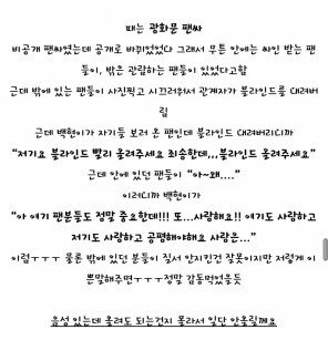 ㅠㅠㅠㅠㅠㅠㅠ미친다ㅠㅠㅠㅠㅠㅠㅠ솔직히백현이팬썹짱이고팬사랑쩌는거직캠만봐도알수있는데사생한테정색하는거가지고지랄하는거진짜맘에안들어ㅋㅋㅋ백현이하는행동보면팬생각정말많이해줌