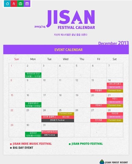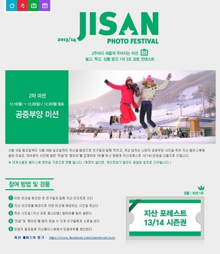 올 겨울 지산은 윈터 페스티벌이라는 테마로 갖가지 페스티벌 이벤트를 열어서