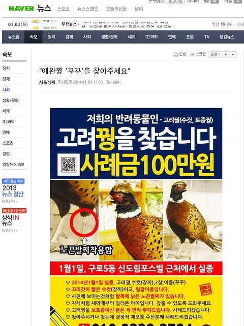 애완꿩 잃어버린 주인의 여자친구입니다.