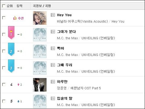 차트점령한 엠씨더맥스 곡들 사이에당당히 자리잡은 정.준.영