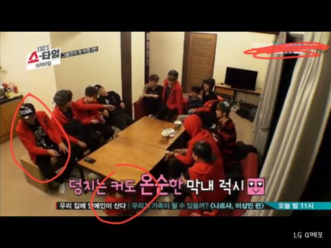 찬열이가바닥에앉아잇다가의자에앉으면서큥이발견ㅋㅋㅋㅋ