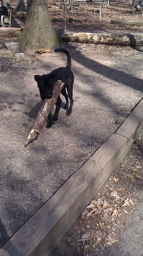누가 나무막대기를 뺏으려 쫓아오길 바라는 맥스