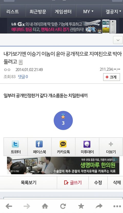 다들 쿠크깨지고 융팬은 이승기욕하고 승기팬은윤아욕하고...ㅋㅋㅋ다들 윤아컴백에지장있으면 어쩌나(1월달에 소시컴백해요) 걱정하기도하고ㅋㅋㅋㅋ뭐 탈덕안하는 남팬이더많지만^0^ㅋㅋㅋㅋㅋ