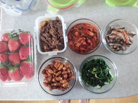 장조림,오징어초무침,버섯볶음,시금치무침,땅콩조림,딸기까지... 어머님 사랑합니다 ㅠㅠ