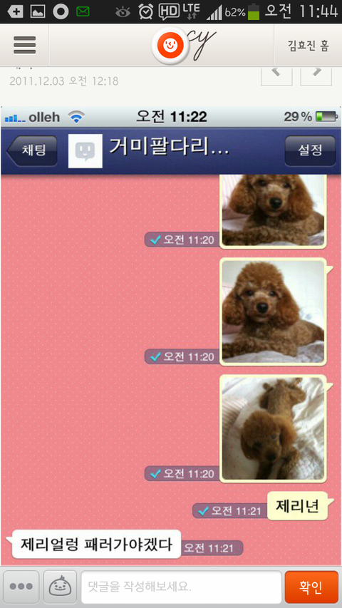 낮에 신랑한테 제리 사진을 종 종 보내주었습니다.