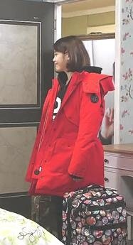 럭키 레드 점퍼 입은 아이유