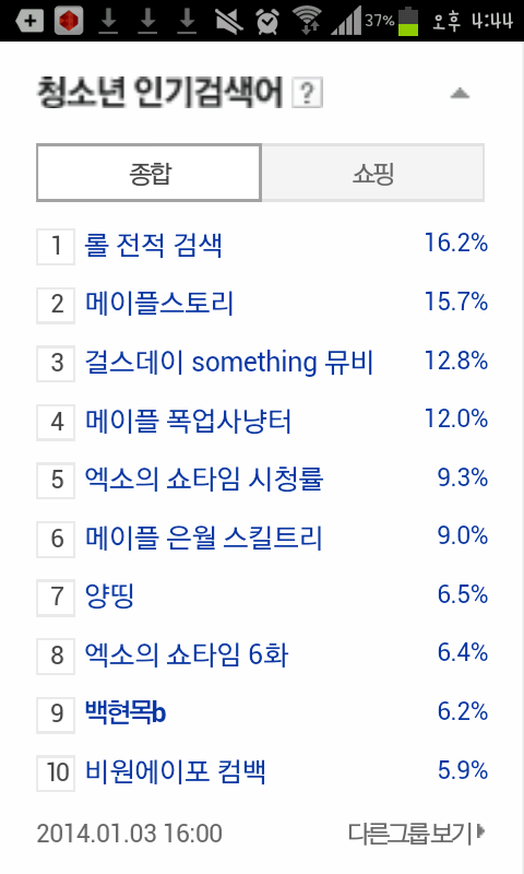 청소년 인기검색어 백현목b