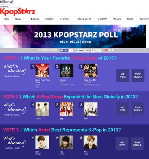 여기서 작년에 종인이가 베스트 아티스트부문 1위했음
