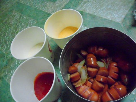 비엔나소시지 외 칠리소스 어니언가루 치즈가루 (테이터펍스찍어먹으라고!!)