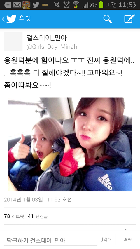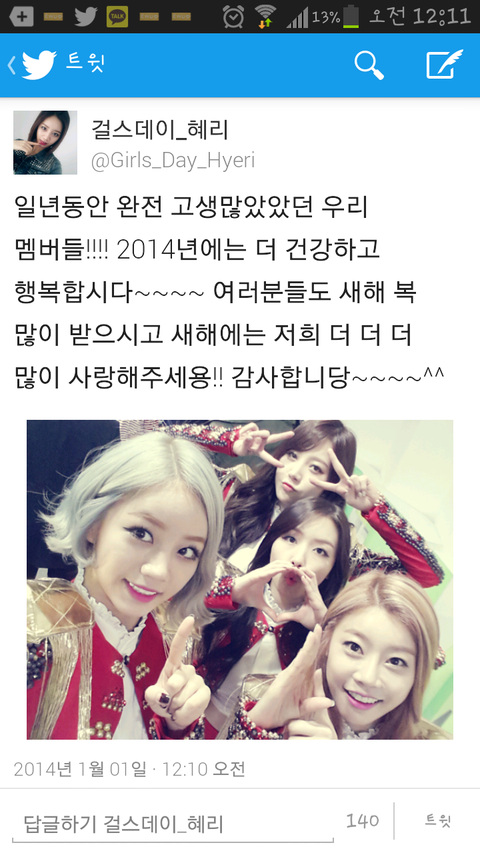 이번컨셉으로 소속사 드림티, 소속사대표, 걸스데이 다 욕먹는데.. 그래도 여기까지힘들게올라왓으니까 이쁘게봐주세요 가요대제전에서 혜리가 나와서 걸스데이 1월 3일 컴백한다고 진짜 해맑게말하는데 진짜 미워할수가없더라.. 솔직히말해서이번노래괜찮은거같고 중간중간 방민아 고음도 잘하고 열심히 준비햇는데 별로라고 하나도매력없다고 그러면 ? 애들 죄책감들지않을까