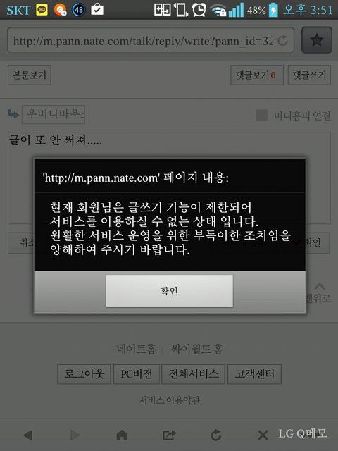 글 정지...왜이래 이거?일단 엄마꺼로 들어왔는데