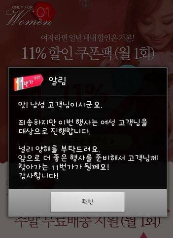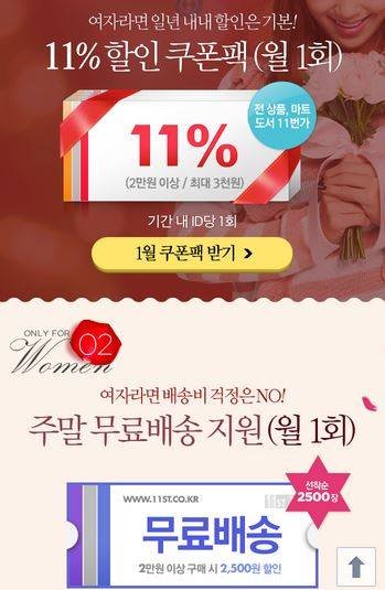 여성에게 무료배송과 할인쿠폰을 지급하는 이벤트,
