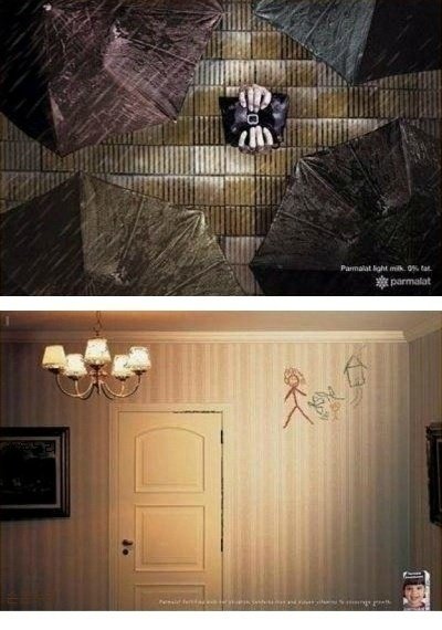첫번째 사진은 "저지방-가방하나로 비를 피할 수 있을만큼 날씬