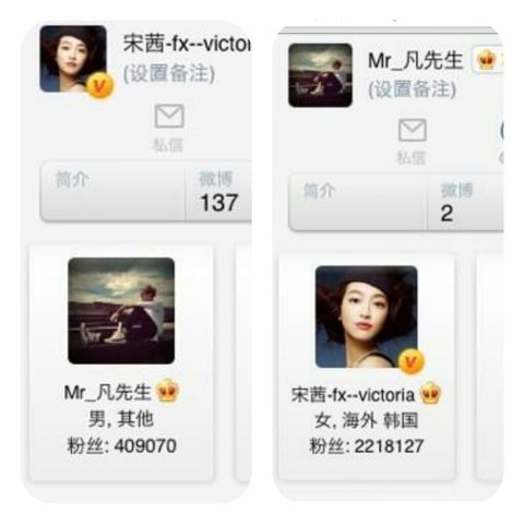 웨이보에서 크리스 → 빅토리아 팔로잉