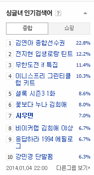 140104 10시 싱글녀 시우민 인기 검색어