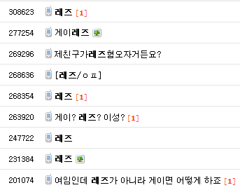 보다시피 레즈라고 검색을 해보니 게시글이 게이 관련 게시글에 비해 매우 적었음.
