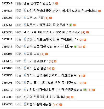 지식인이라는 게시판의 게시글들을 캡처한 것임.