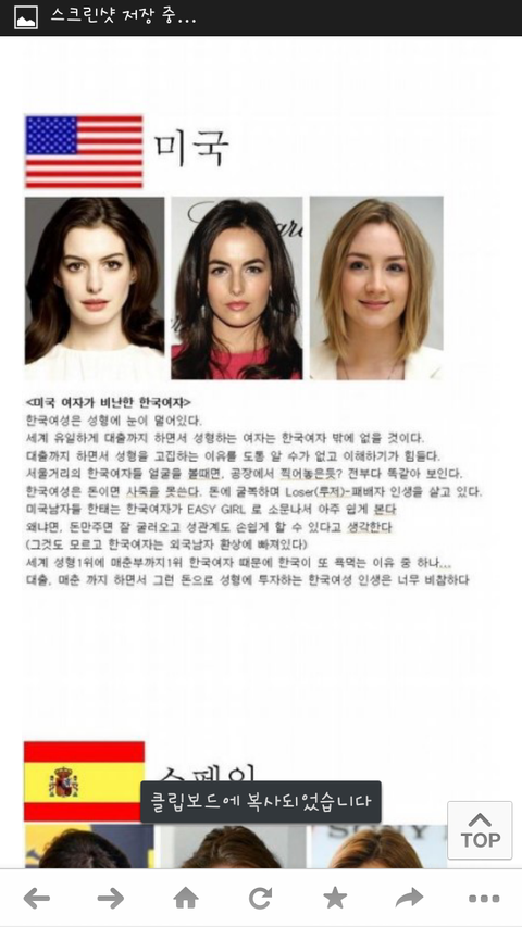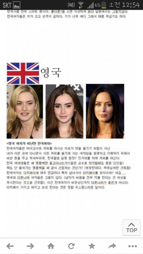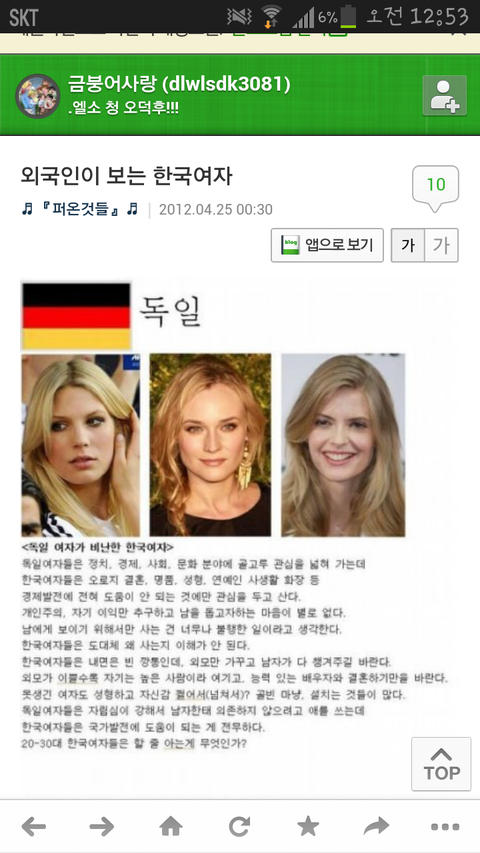 100프로 장담할 수 있는데 한국인에 대해서 저렇게 자세히 알고 관심있는 외국인은 전세계 어디에도 존재하지 않는다. 한국인이랑 실제로 얘기해본 적도 태어나서 거의 없을거다. 그나마 미국이나 일본쪽이 한국인을 만나본적은 있겠지만, 나머지는 평생 한국인이란걸 만나봤을 가능성 조차 낮다. 내가 미국에 5년째 살아도 미국 여자나 남자에 대해 저렇게 자세히 평가해보라면 못하는데.. 개뿔 만나본 적도 없는 한국인들 쟤들이 어떻게 저렇게 잘아냐. ㅉㅉ