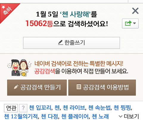 얼마전부터 종대생들이 종대 연관검색어 청소해준다고 검색창에 첸 ㅇㅇㅇ 치기를 했었음 ㅋㅋ 그 결과...