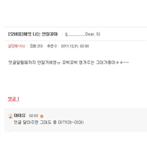 이런데 내가 어떻게 팬을 안해 ㅠ 감동받은거 더 있는데 너무 많아서 못올림 ㅠ 아무튼 안티분들도 무작정 나쁘게 보지 말아주세요..정말 알면알수록 괜찮고 더 좋아지는가수에요...아이유 화이팅!!