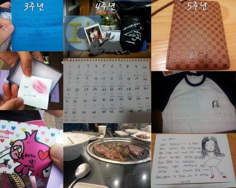 5주년엔 유애나라고 써있는 지갑,직접 그린 그림이 있는 티셔츠,편지마다 조금씩 내용이 다 다른 편지.