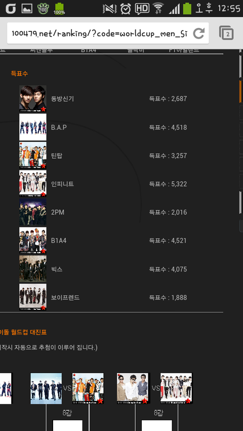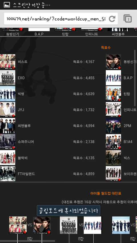 우와! 지금 아이돌 인기 월드컵?같은거 하는거 같은데