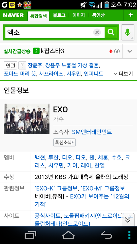 이게 일단 엑소껀데 연관검색어들 보아하니