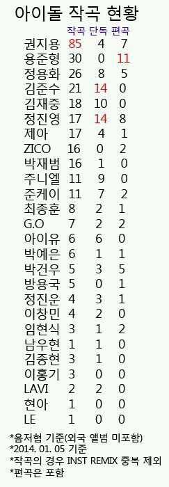 비스트 용준형은 편곡... 작곡도 많지만 단독은 0개라는게 아쉽..