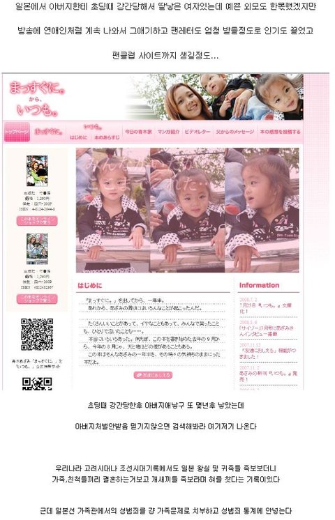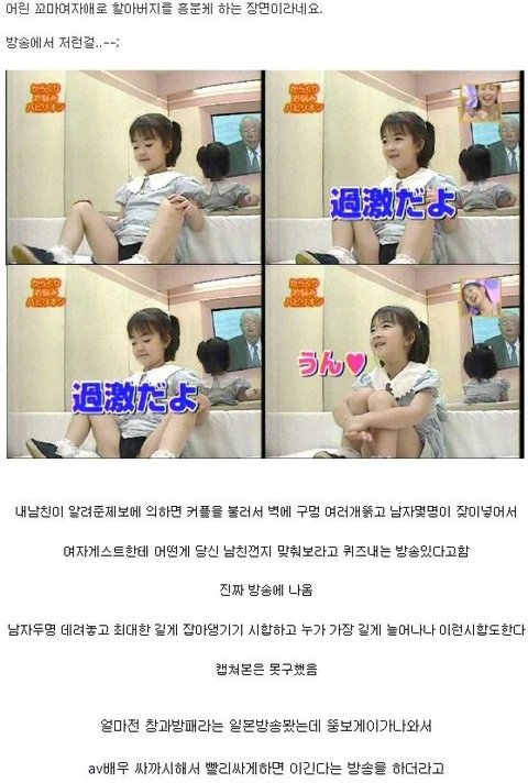 몇년전 일본방송 캡쳐본 봤는데 6살쯤 되는 여자애를 데리고 다리벌리게하고 (물론 옷은 입었음)