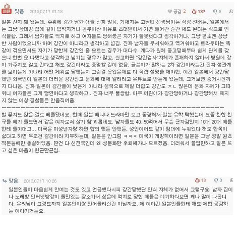 또 얼마전 일본에서 강간클럽이라는 단체 적발됬는데 2년동안 500명을 넘게 강간했댄다, 비디오도 찍구,