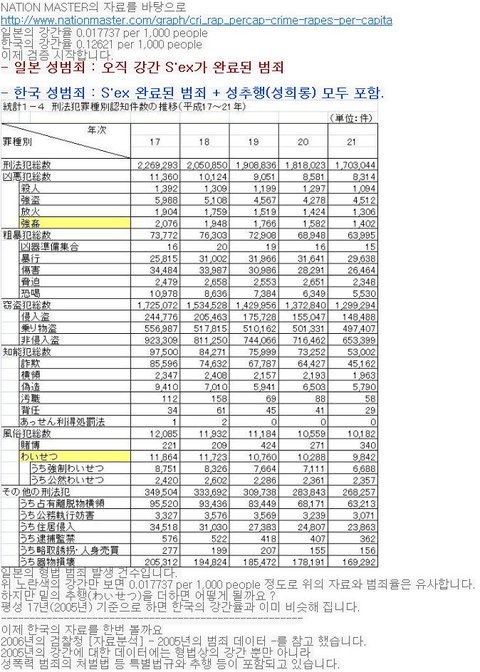 한국의 강간범위는 이렇습니다. 외국과 기준이 다르니 강간 범죄율이 높을수 밖에....