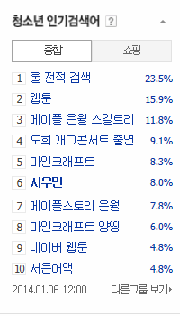 140106 12시 (정오) 시우민 청소년 인기검색어
