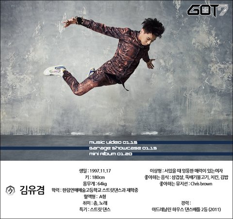 김유겸 Say : 안녕하세요! 저는 팀에서 춤과 노래와 랩을 맡고 있는 막내같이 안 생긴 막내 김유겸입니다. 춤을 좋아하며 스트릿 댄스에 가장 자신 있습니다. 예전부터 연습생 생활을 같이했고 함께 땀 흘렸던 형들 그리고 친구와 데뷔를 하게 되어 정말 행복합니다. 항상 습관처럼 같이 데뷔하는 게 꿈이라고 말했었는데 정말 이뤄져서 너무 행복하고, 모든 분께 그리고 우리 팀에게 감사합니다. 앞으로 가수의 길을 평생 걷고 싶기에 항상 행복하고 즐겁게! 그리고 겸손하게 무엇이든지 제일 열심히 하겠습니다. 지켜봐 주세요~!^^