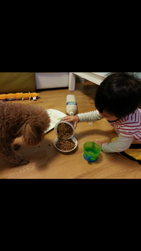 개밥도 챙겨주시며 다정함을 보여줍니다.