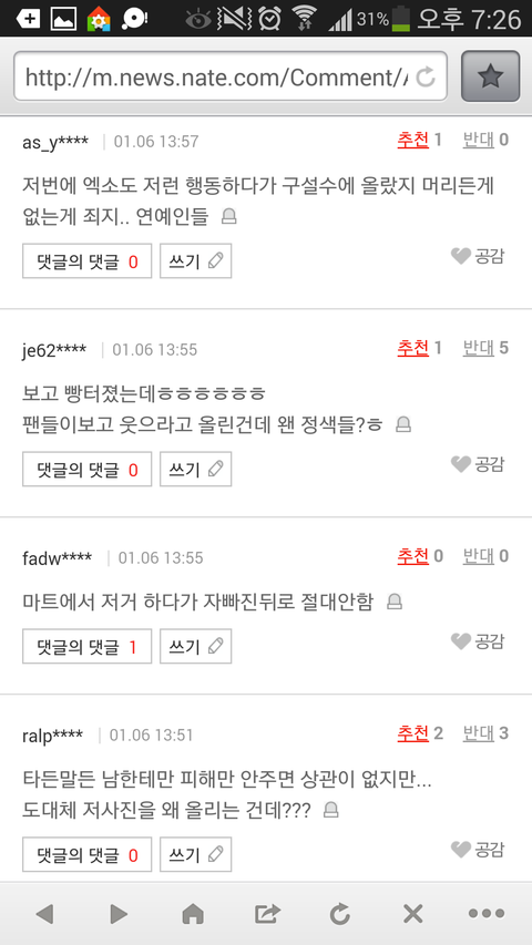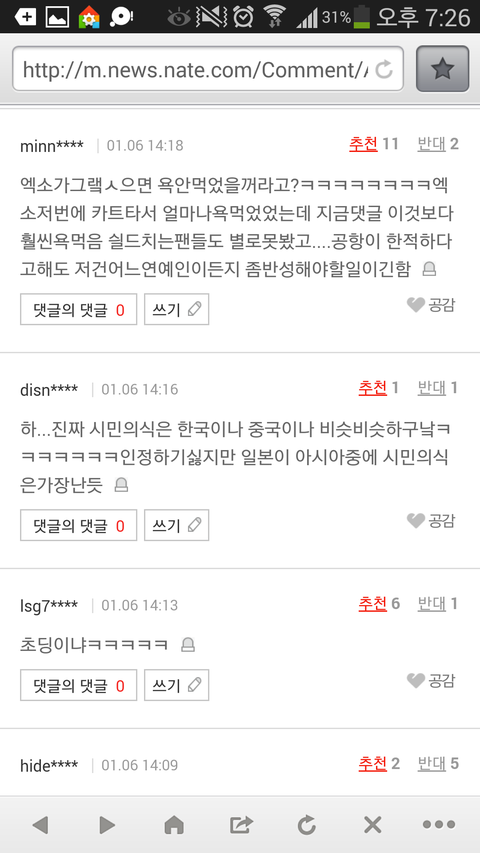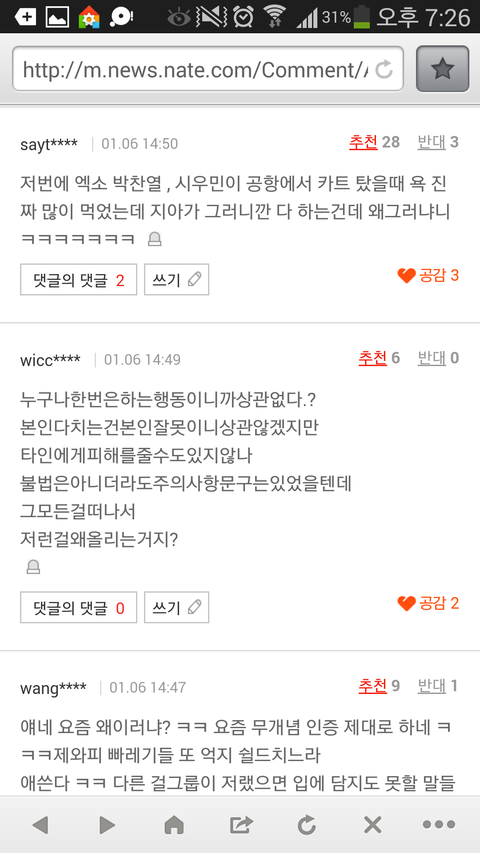 그게 네이버 기사에 떴는데 댓글이 진짜 ..