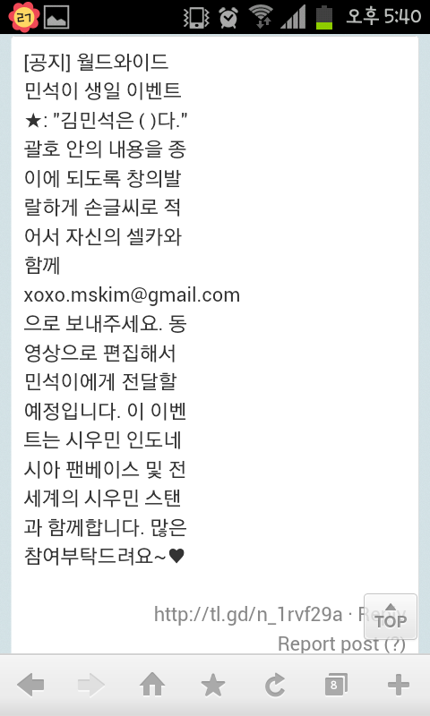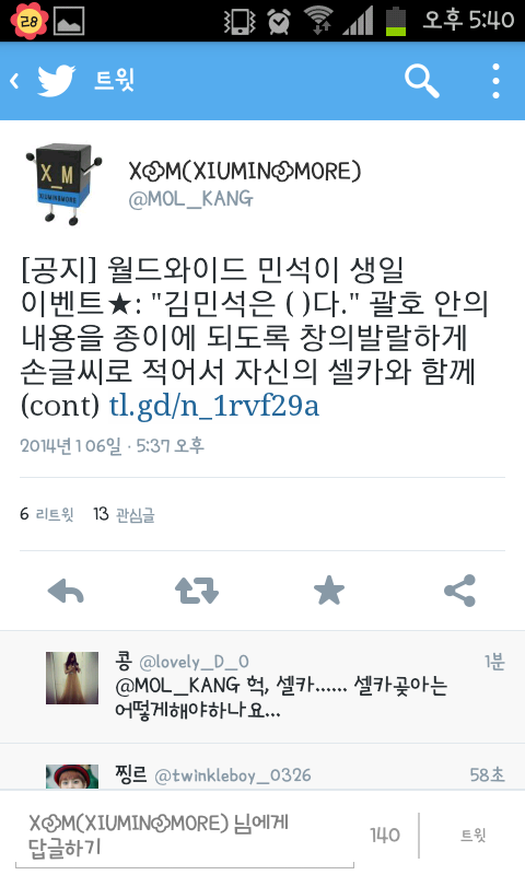 웅녀들 엑센앰두 민석이 생일 이벤트한다