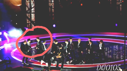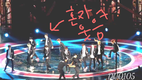 보시다시피 준면이 솔로끝날갈쯤ㅋㅋ찬열이 곁에 다가간 경수 ㅋㅋㅋㅋ놀래켜주고싶나봄